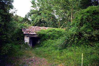 La verdad es que el molino está un poco escondido y por ello tiene más encanto. También es verdad que no está para muchos trotes, de eso la culpa la tenemos todos y entre todos tenemos que ponerle remedio ya mismo. El camino no es que sea muy largo, unos diez minutos, hay que tirar por el monte, detrás de la casa de Ponciano, bajar y subir un poco, curva a la izquierda, otra bajadita y allí nos lo encontramos. Aquí mismo lo tenemos.